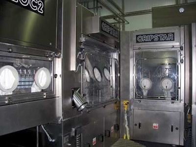 ISOLATOR CHAMBER. Sterilization, rinsing, filling, and capping are all conducted inside this microbiological isolator chamber.
